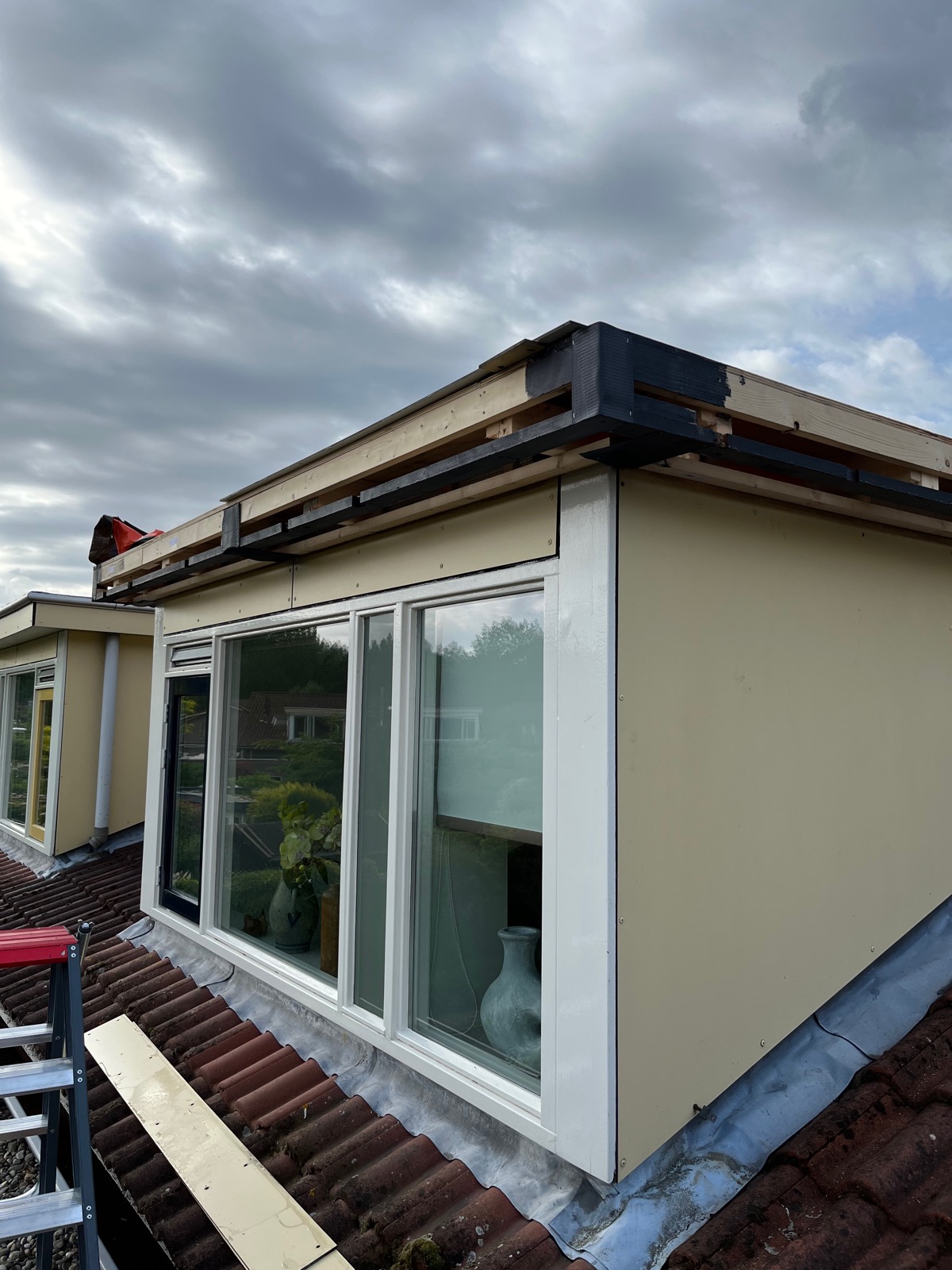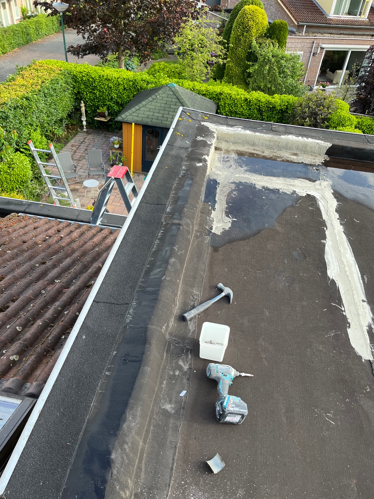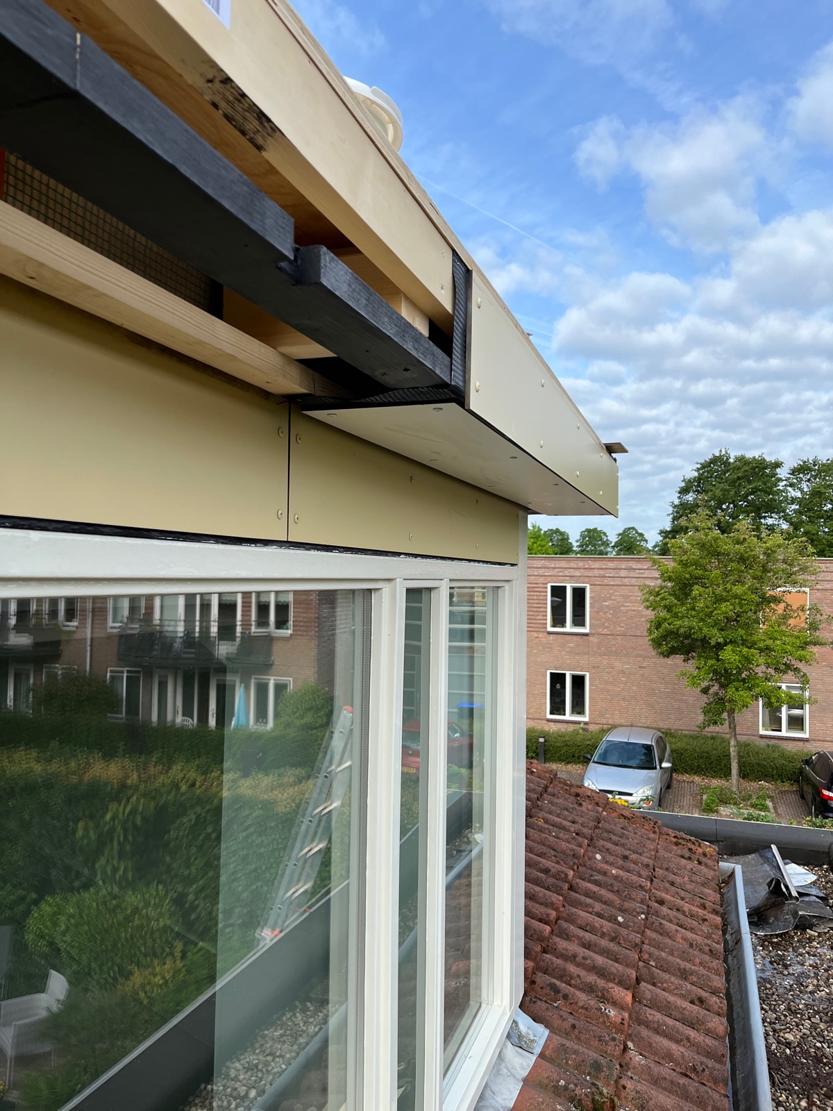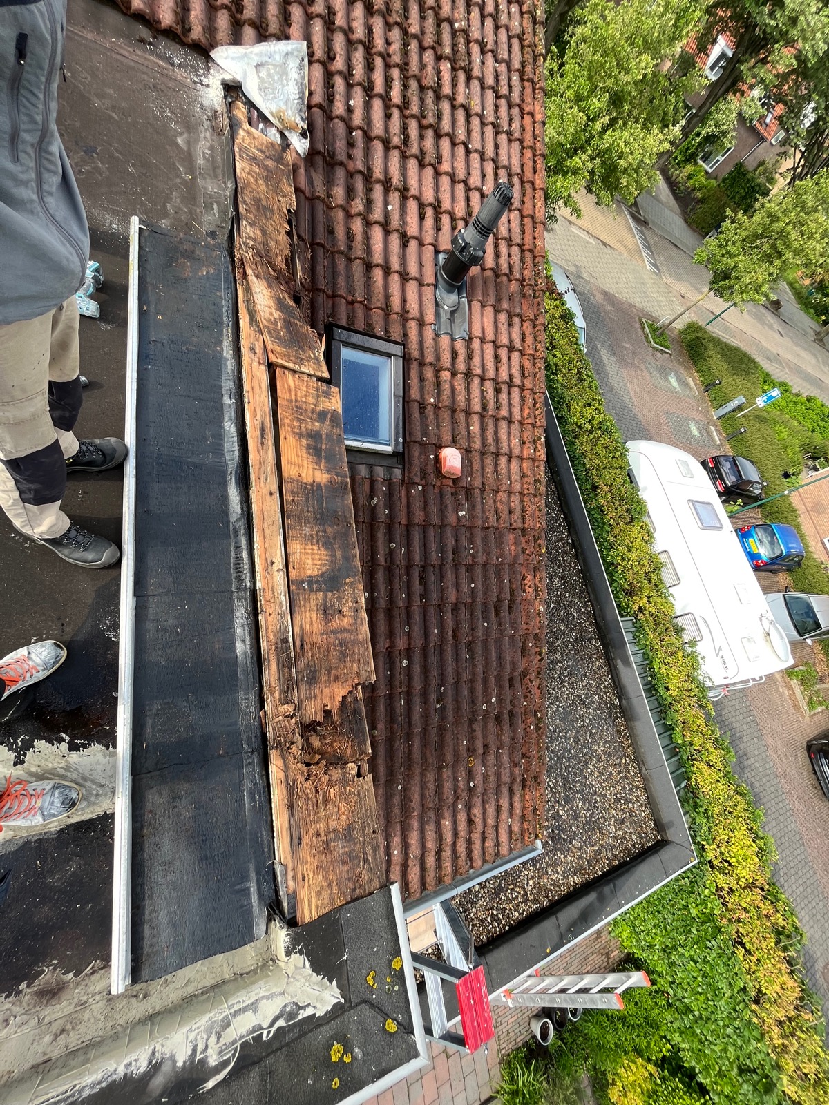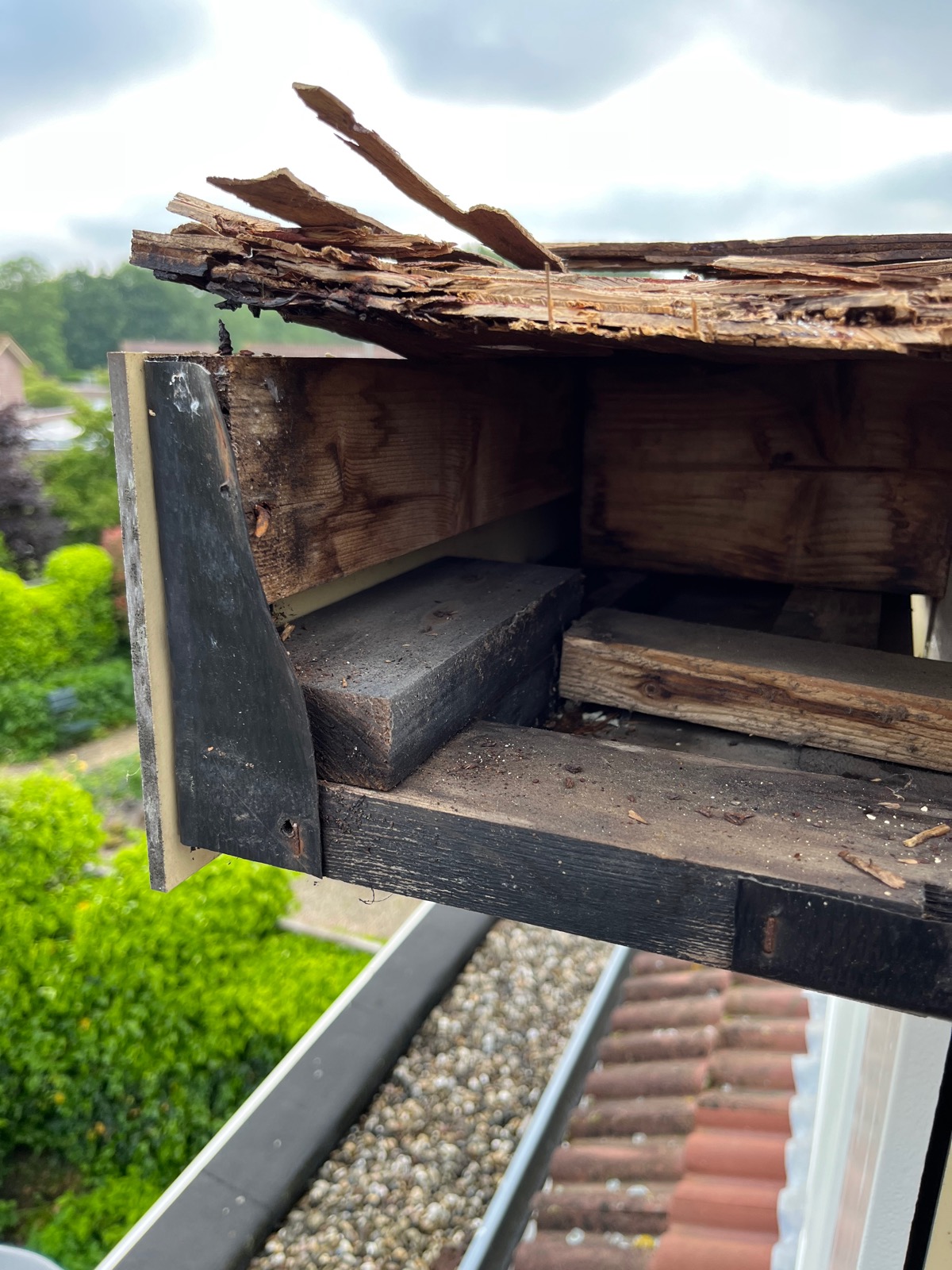 Deze dakkapel was duidelijk toe aan wat herstelwerkzaamheden. De overstekken van de dakkapel waren behoorlijk aangetast door waterschade. We hebben de overstekken vervangen en verzwaard uitgetimmerd om doorzakking te voorkomen. Hierdoor zal het water richting de afvoer blijven lopen in plaats van over de zijkant.
