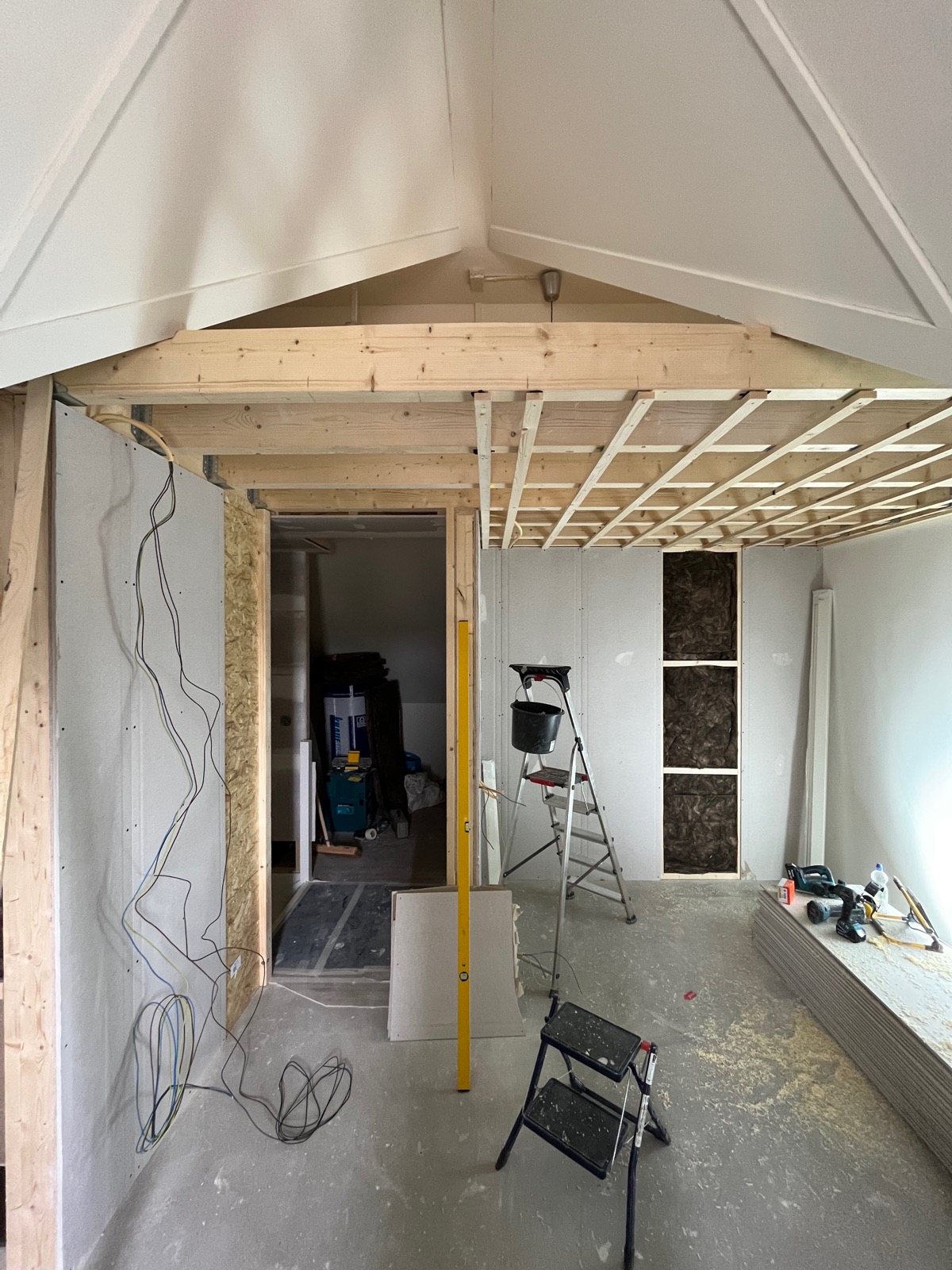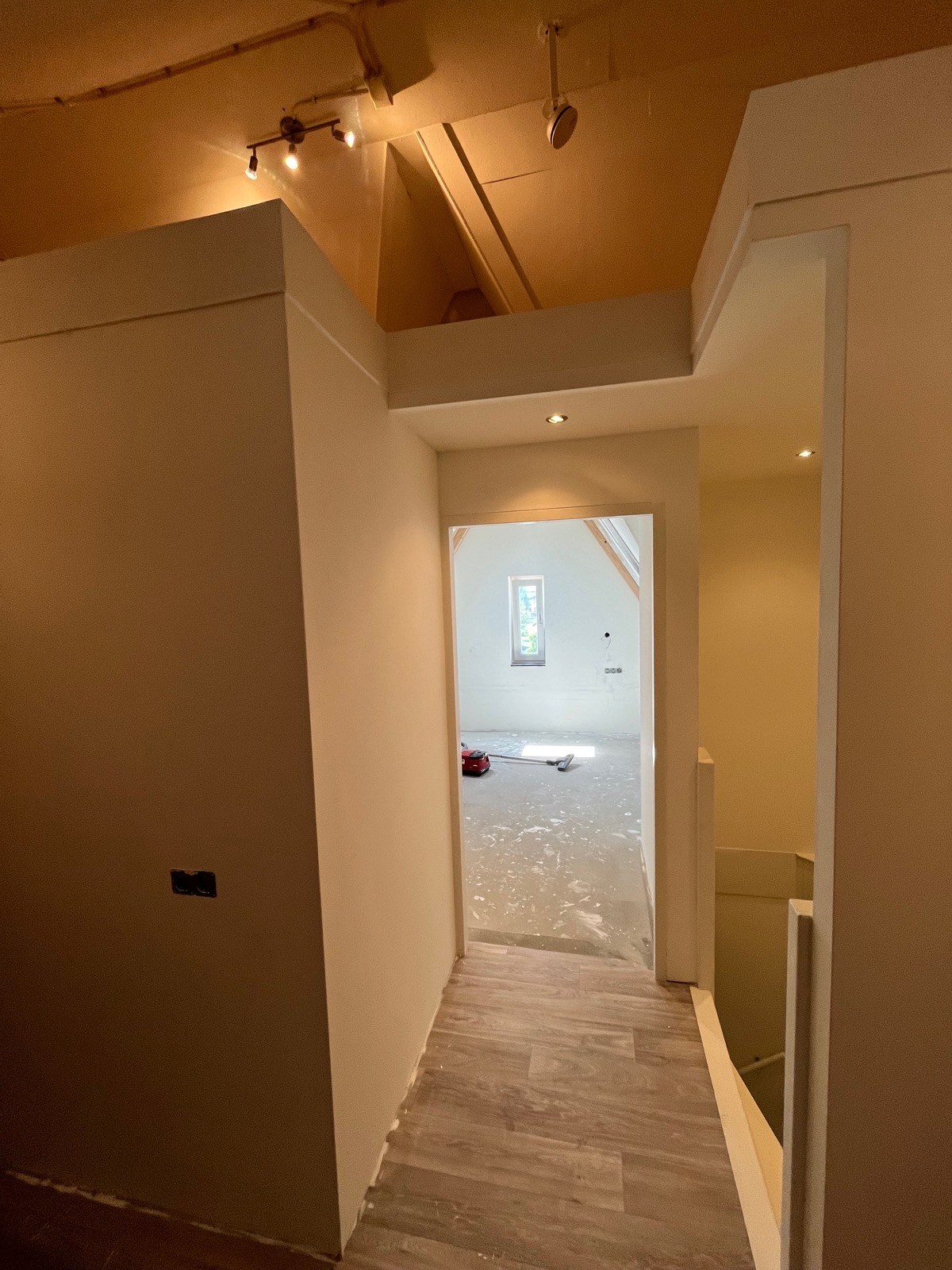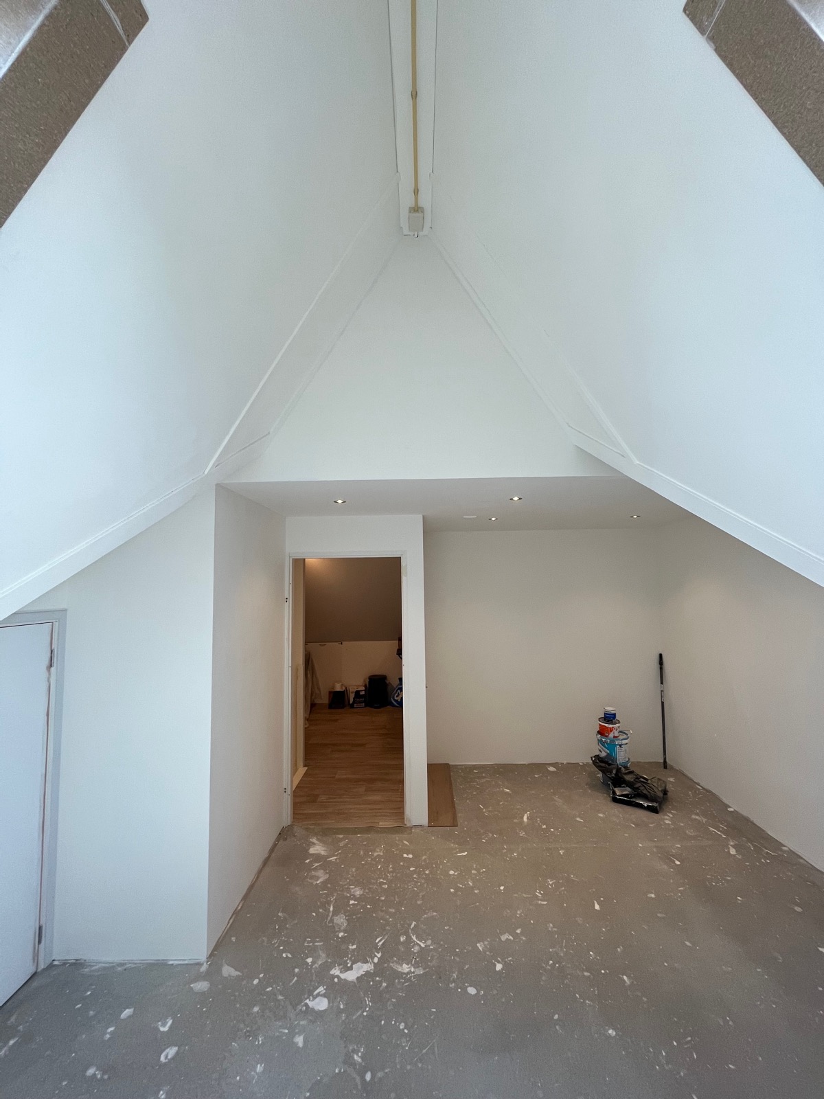 We hebben dit weten te bereiken door een extra wand en een vliering te plaatsen. De vliering