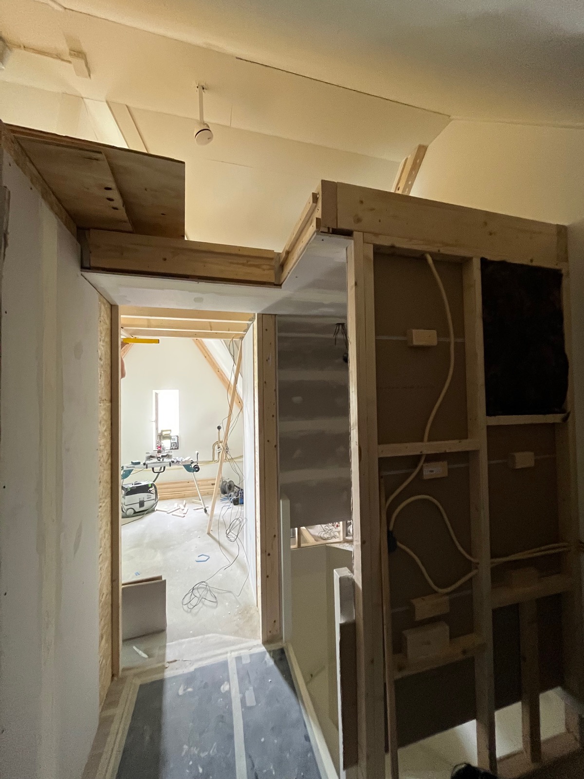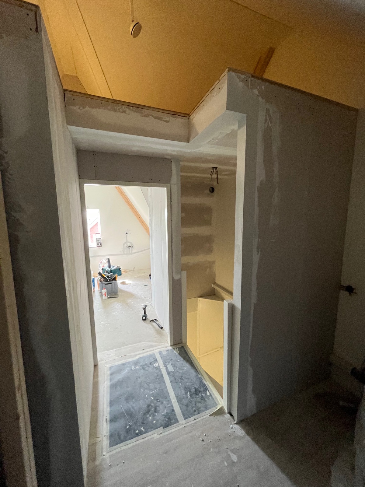 fungeert nu als opslagruimte, en de slaapkamer en wasruimte worden gecreëerd door de extra