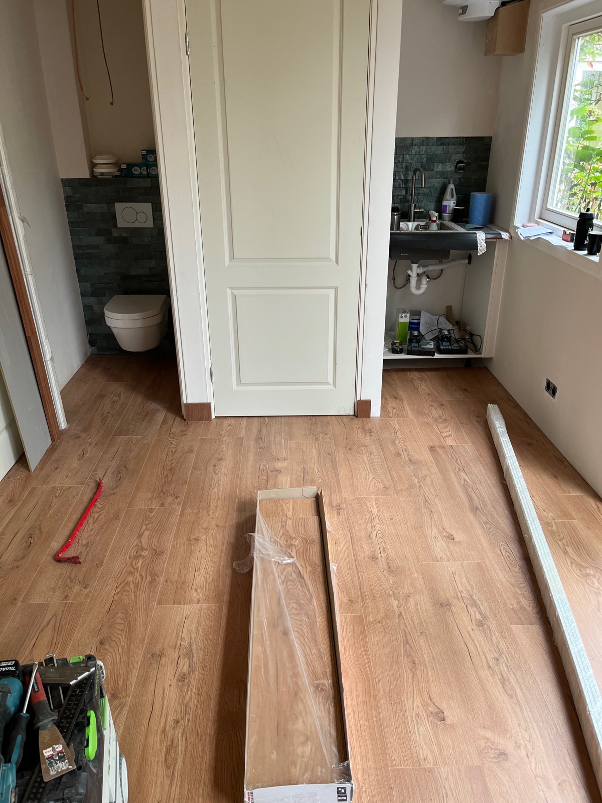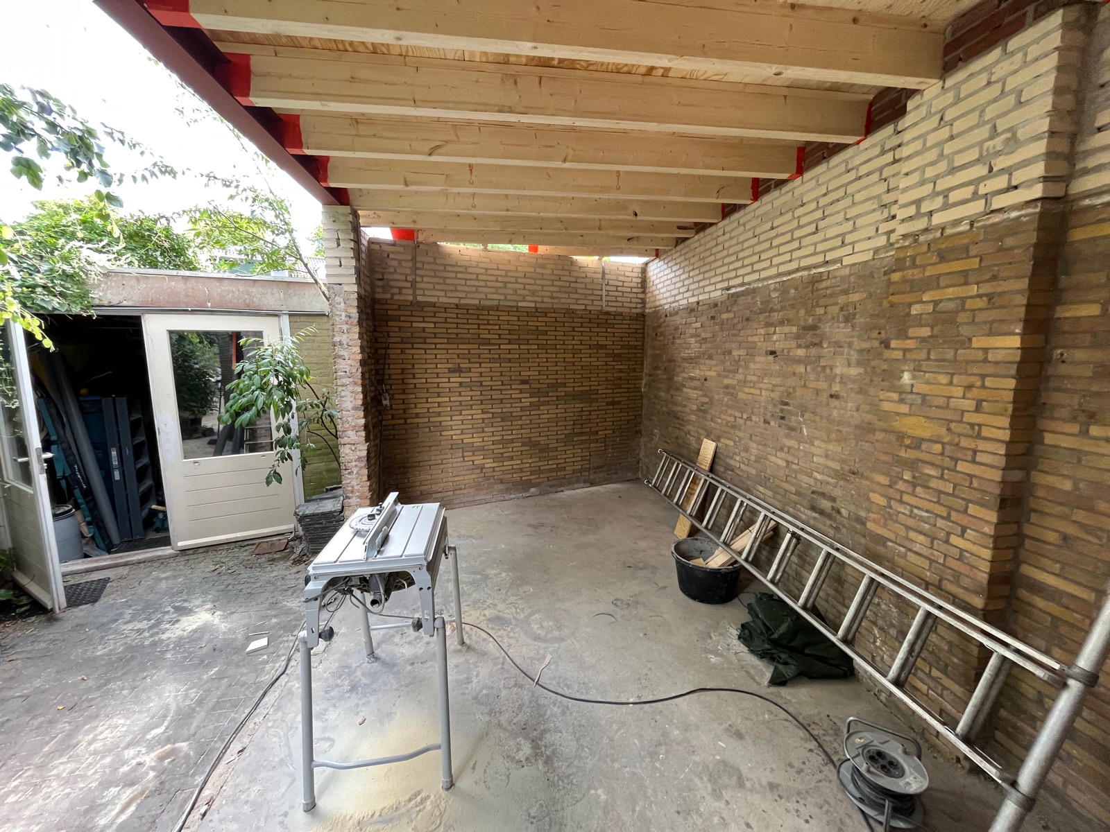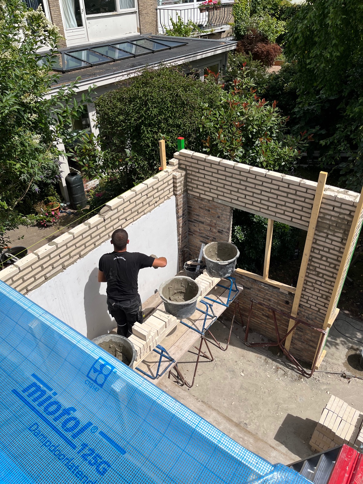 Bij een prachtige woning in Utrecht de garage omgebouwd tot een woonruimte. Hiervoor hebben we een grote hoeveelheid werk moeten verzetten. Zoals het aanleggen van nutsvoorzieningen, nieuw plat dak inclusief verhoging, een toilet, een douche en een klein keukenblokje.